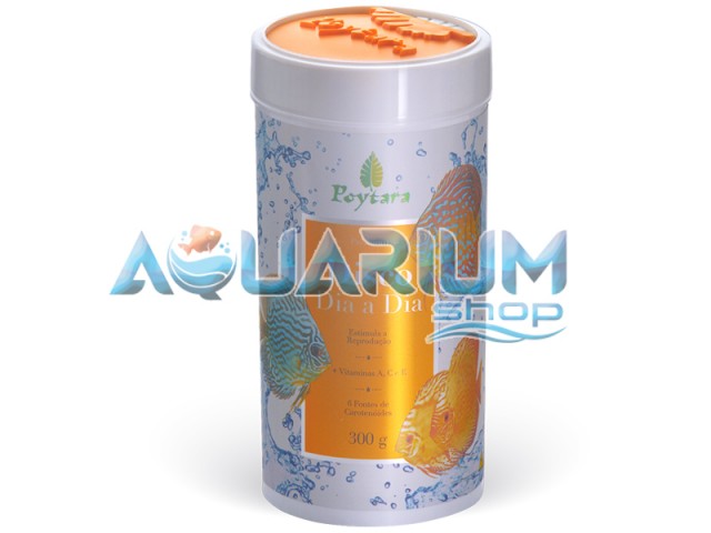 Poytara Disco Dia a Dia se destina à manutenção de acarás discos adultos e estimula a reprodução. Alimento elaborado com base no perfil de aminoácidos de discos adultos. As proteínas são utilizadas somente em funções enzimáticas, hormonais e afins, enquanto os lipídeos e carboidratos são usados como fonte de energia. As vitaminas A, C e E, relacionadas com a reprodução, receberam aporte no nível de inserção para garantir índices de reprodução com resultados satisfatórios. Contém ingredientes vegetais com princípios ativos afrodisíacos.
