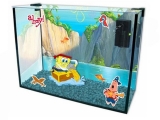 Aquário com o tema do Bob Esponja. Litragem: 15l. Acompanha: 1 Planta de Plástico 1 Personagem do tema Filtro Interno 110v Adesivos do tema.