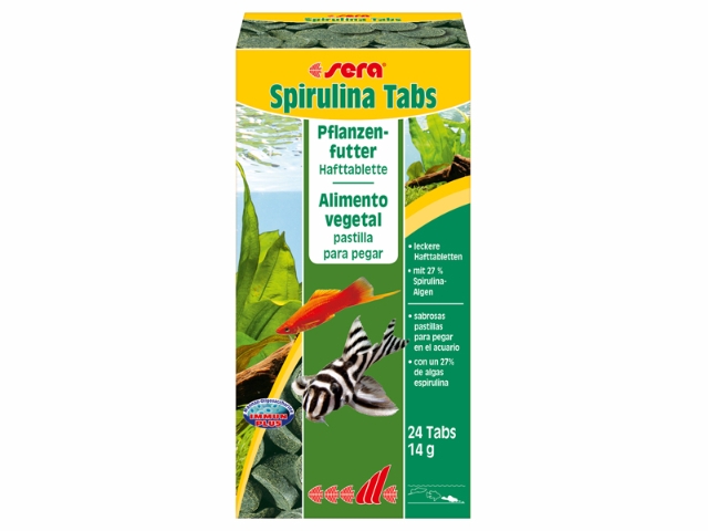 Sera Spirulina Tabs é o alimento vegetal para peixes principalmente herbívoros e invertebrados na água doce e salgada.